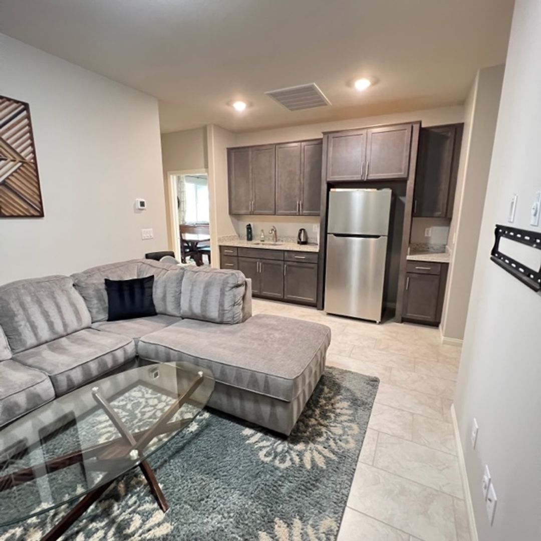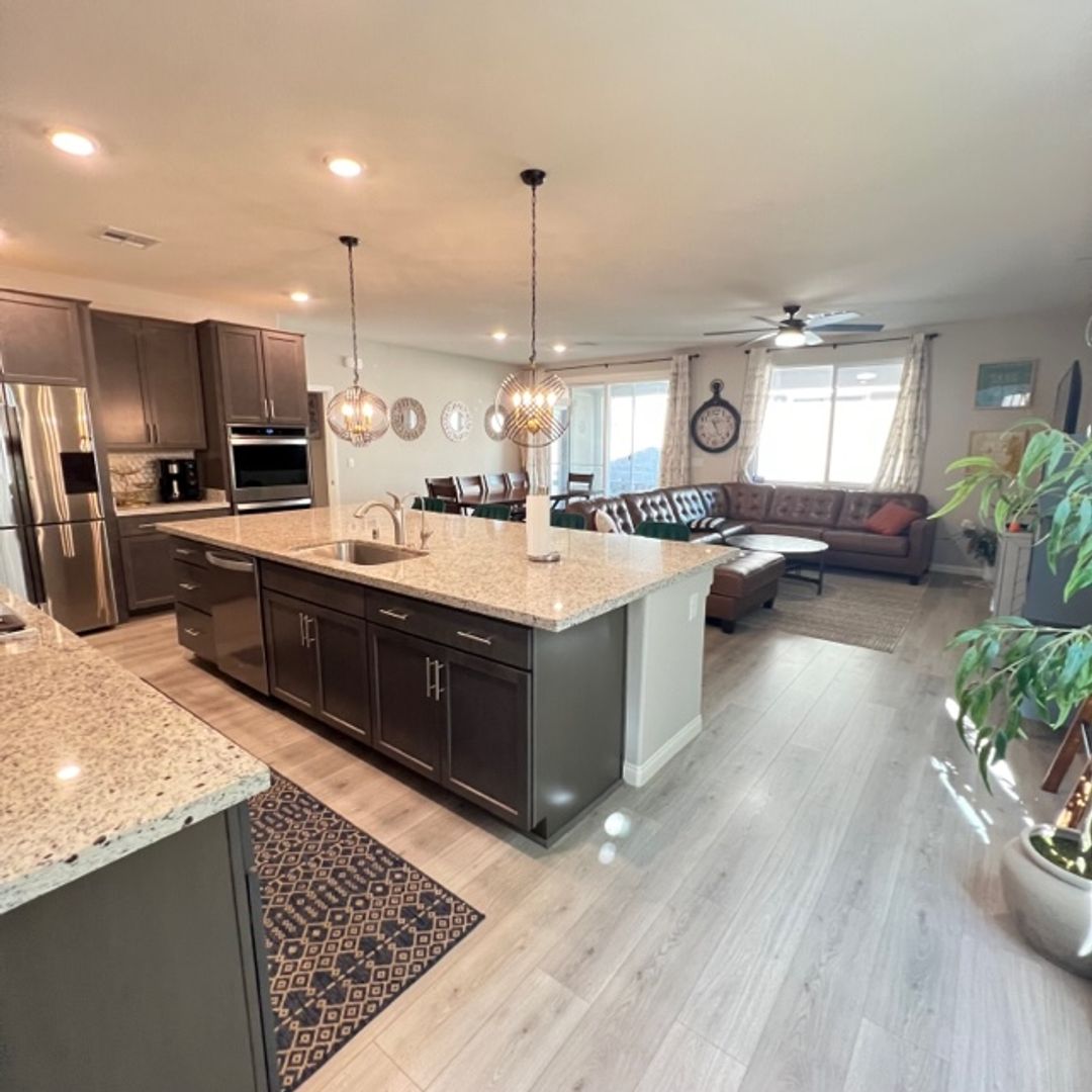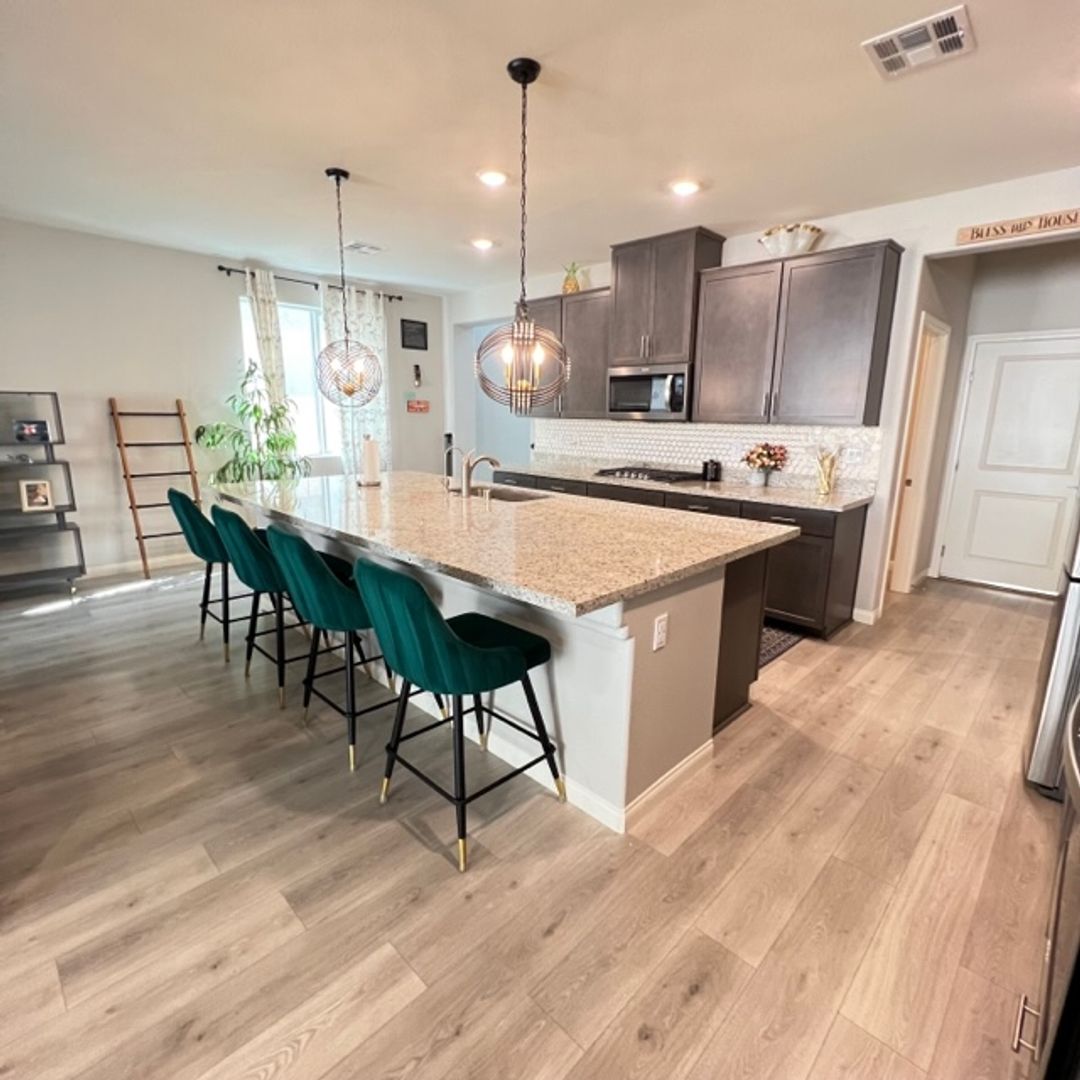 Two houses in one! This multi gen home has a separate entrance with a bedroom, living room, bathroom, and kitchenette. Perfect for an older child or parents. Did I mention how gorgeous this house is? High end luxury vinyl plank downstairs and upstairs, stylish granite, unique backsplash, upgraded fixtures, nice lighting touches, and the master bathroom and closet are the size of a bedroom! Do not miss out on this unique opportunity. Home is almost new!