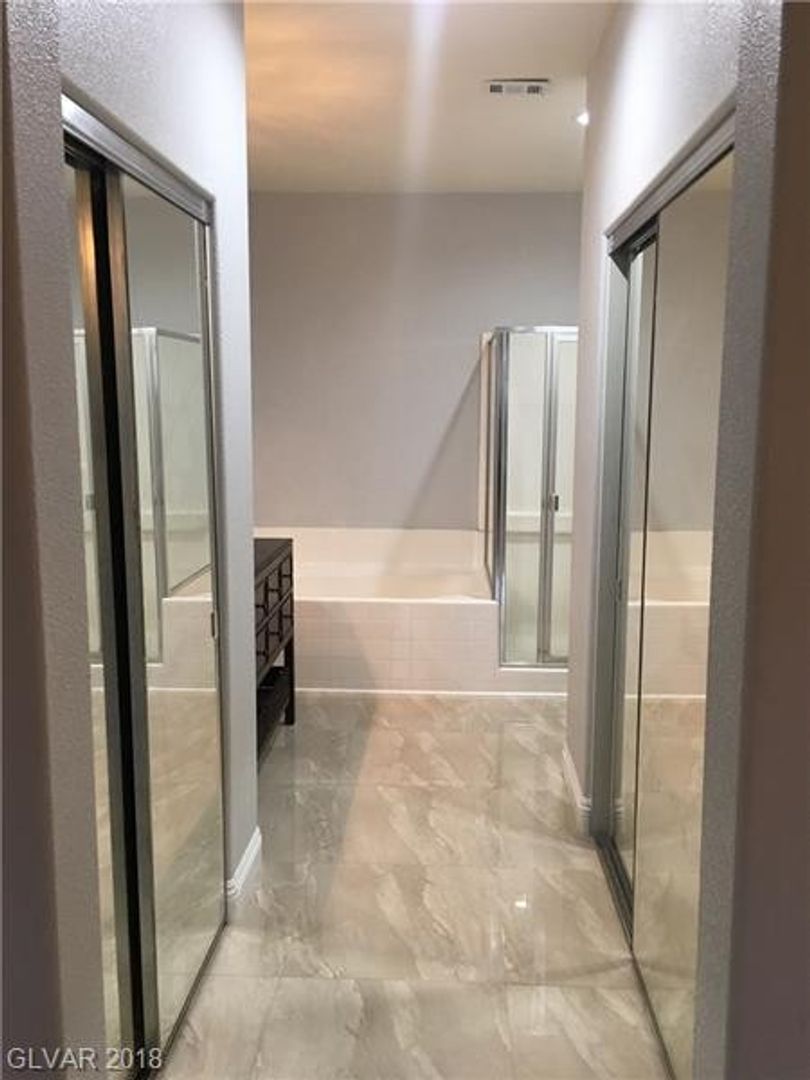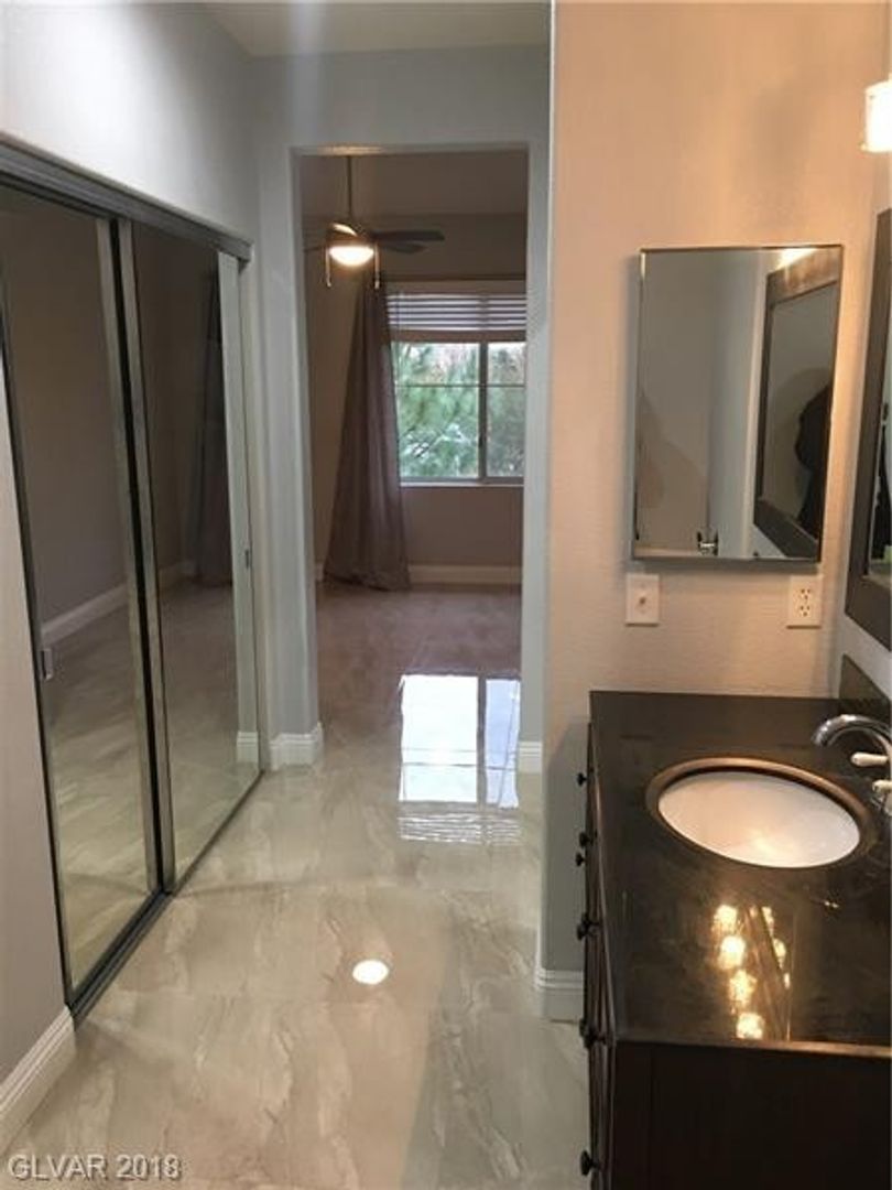 Gorgeous Summerlin condo with an attached garage located in a lushly landscaped gated community. Fully remodeled with modern touches to include quartz counters, glass backsplash, stainless steel appliances, 2 tone paint, faux marble tile, 6" baseboards, custom doors, new vanities, and new lighting throughout. Do not miss out on this one!