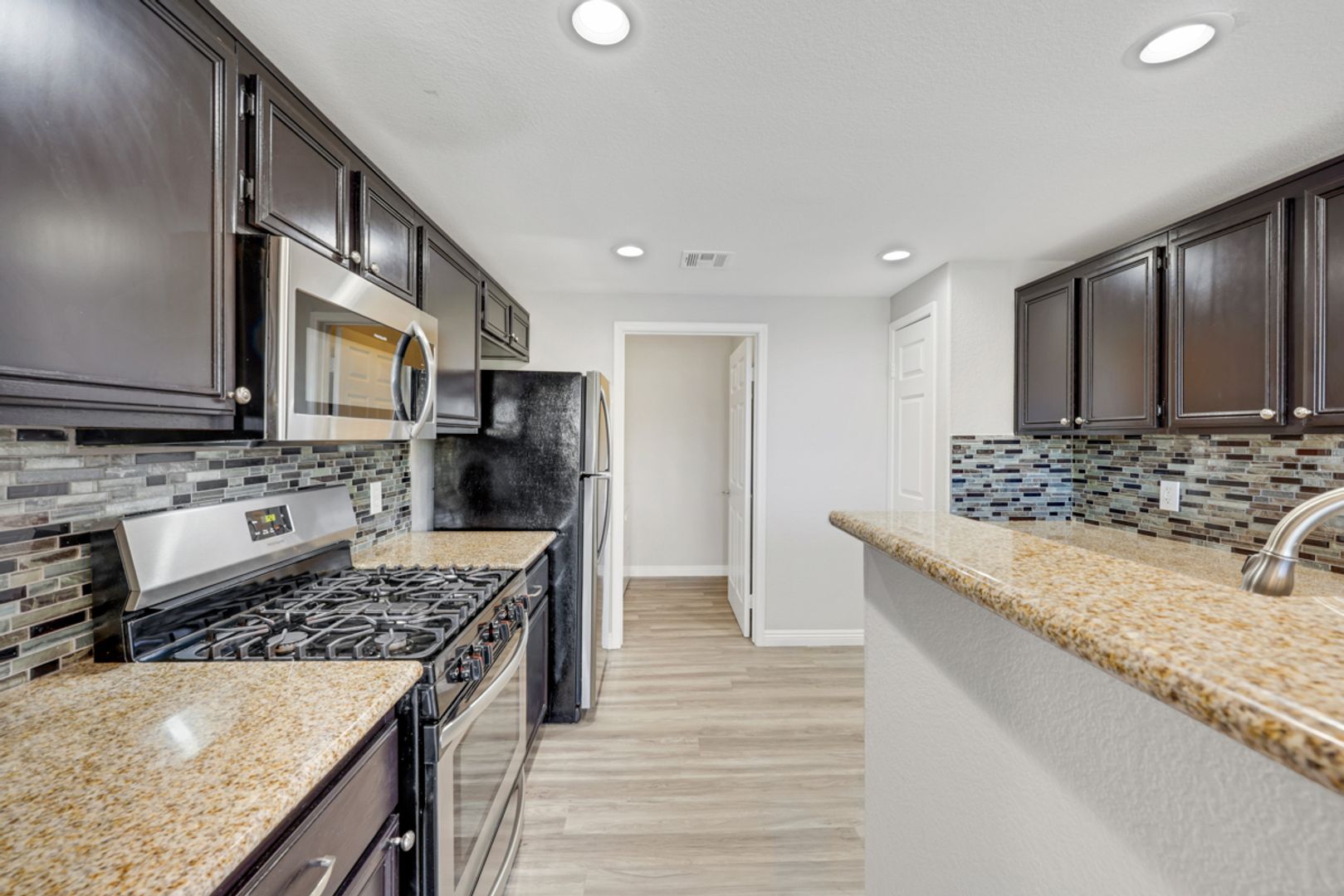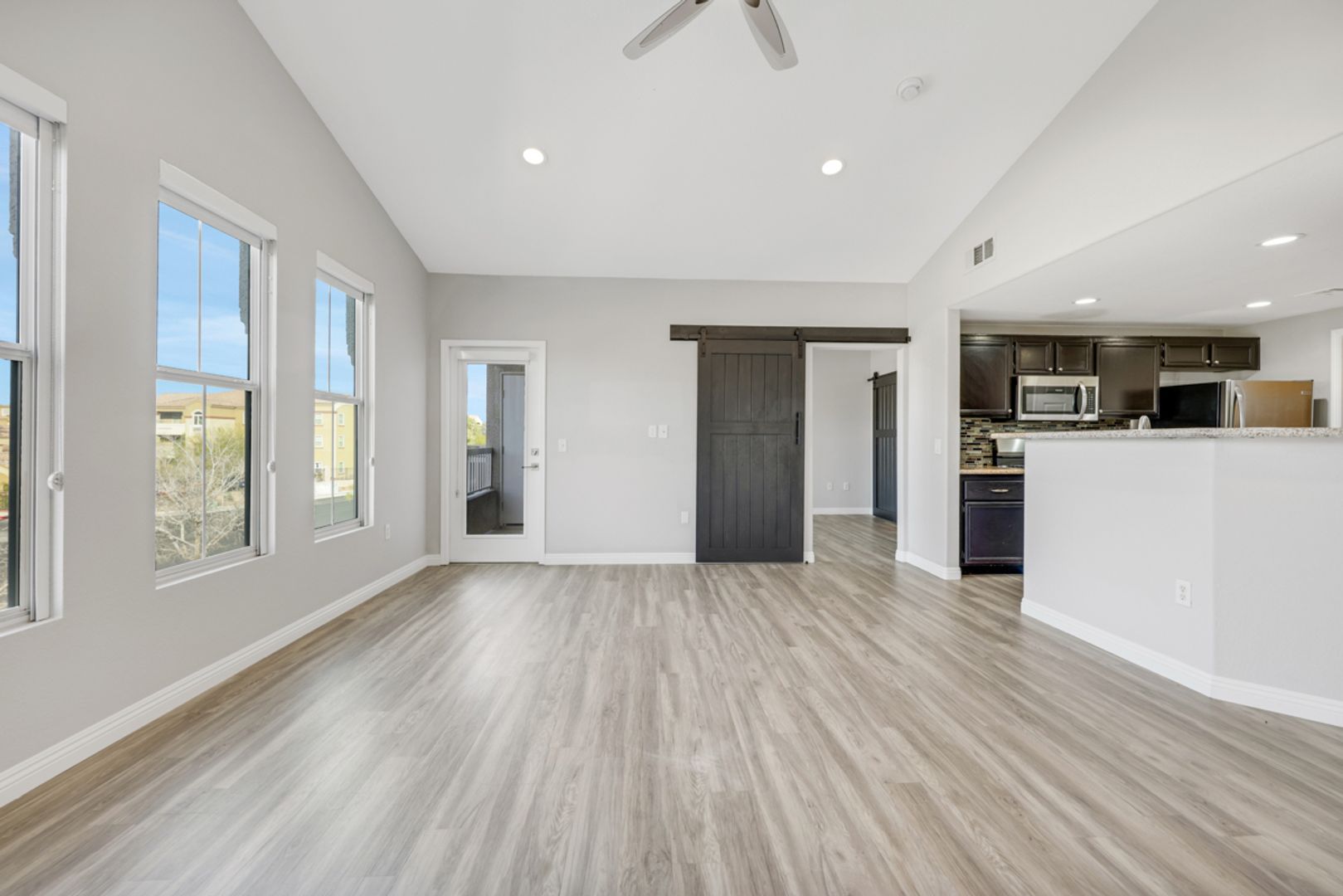 Perfect location in the heart of shopping and dining, Chateau Noveau is a sought after gated community featuring direct access garages and a park like setting. This remodeled condo features luxury vinly plank flooring, granite, new paint, nice fixtures and ceiling fans, and a gorgeous barn door to top off the look!