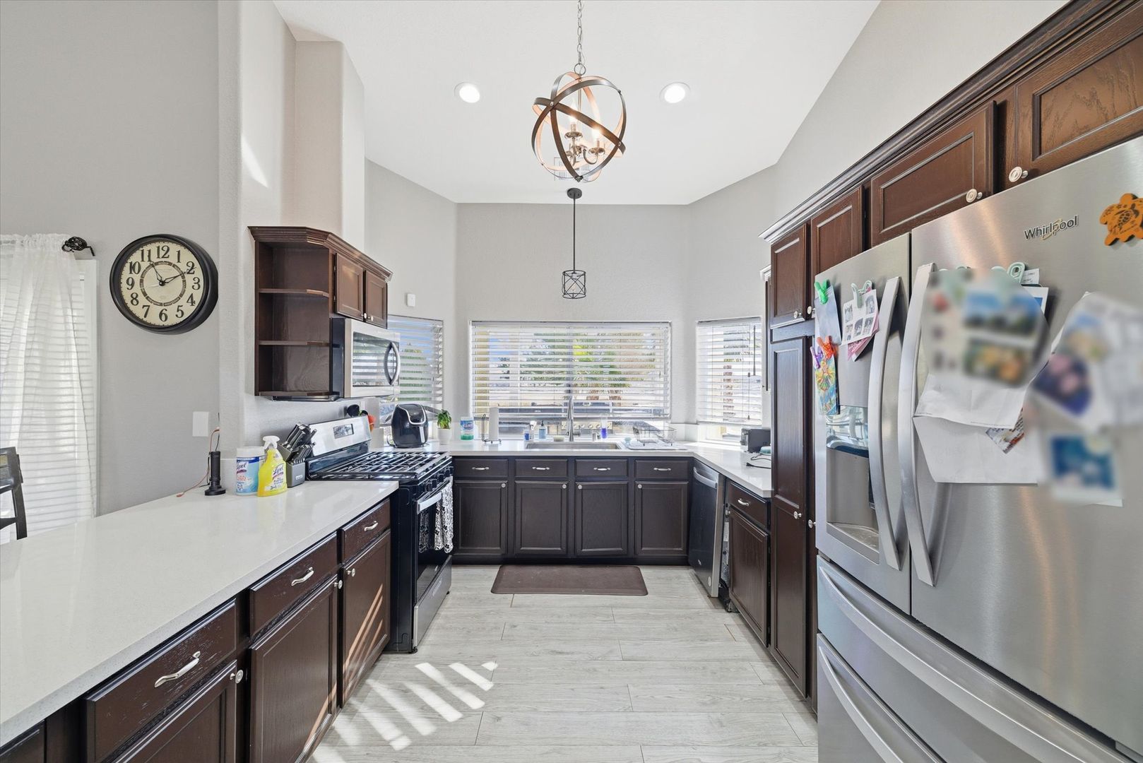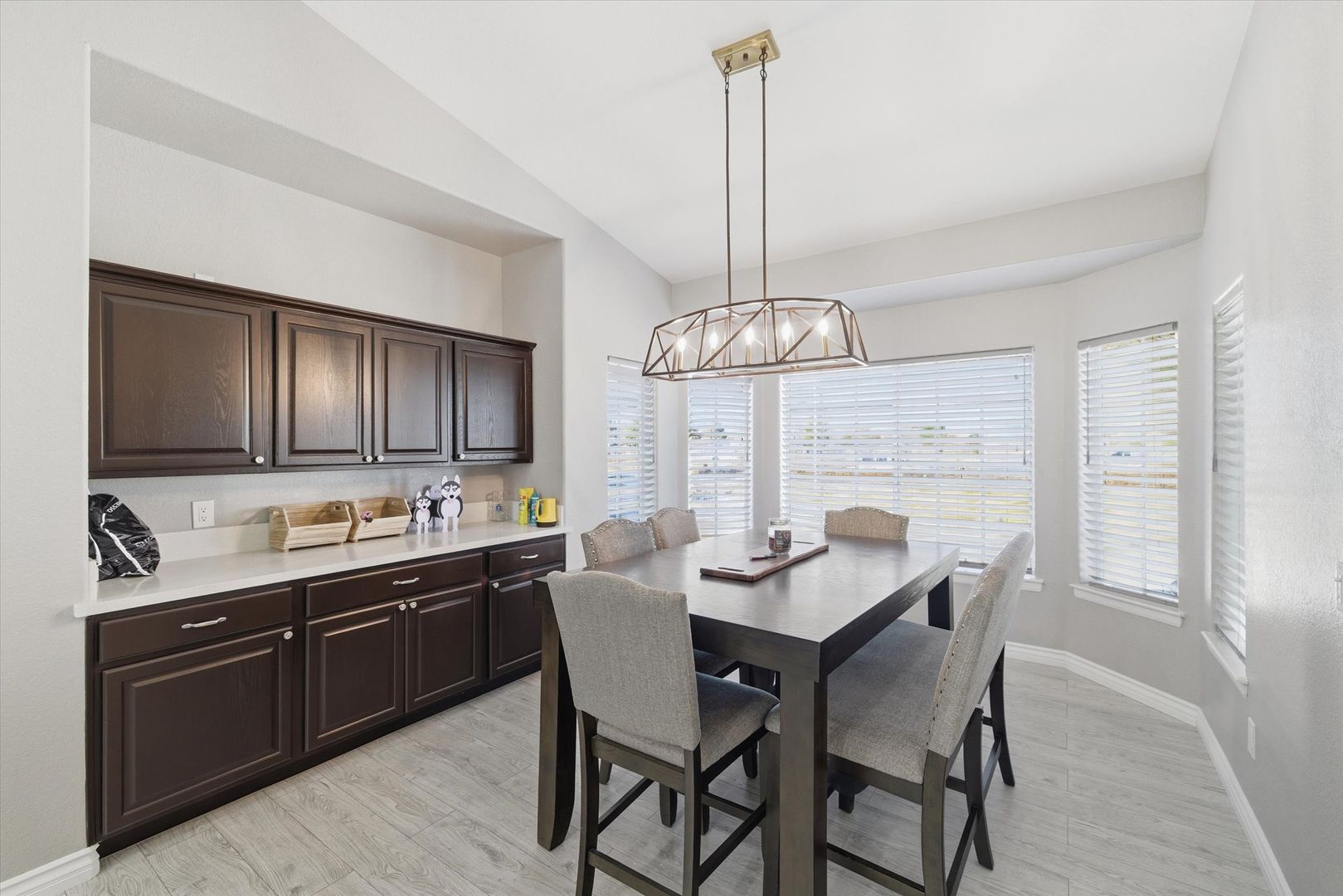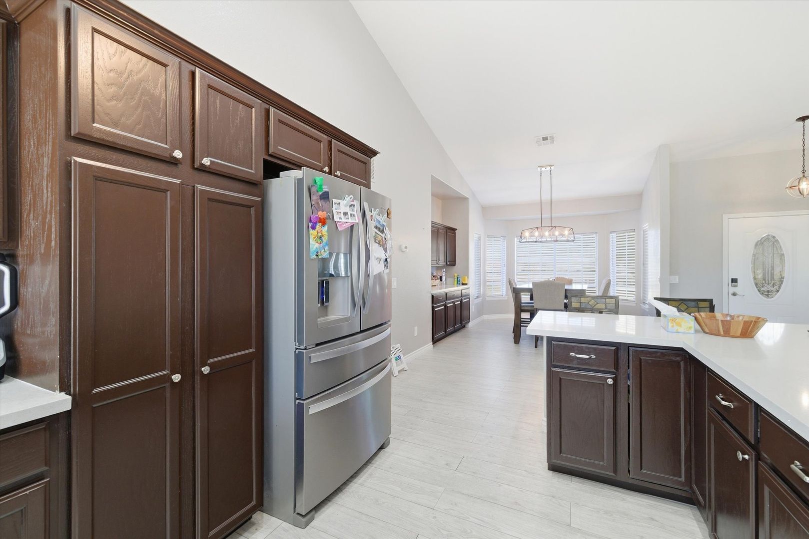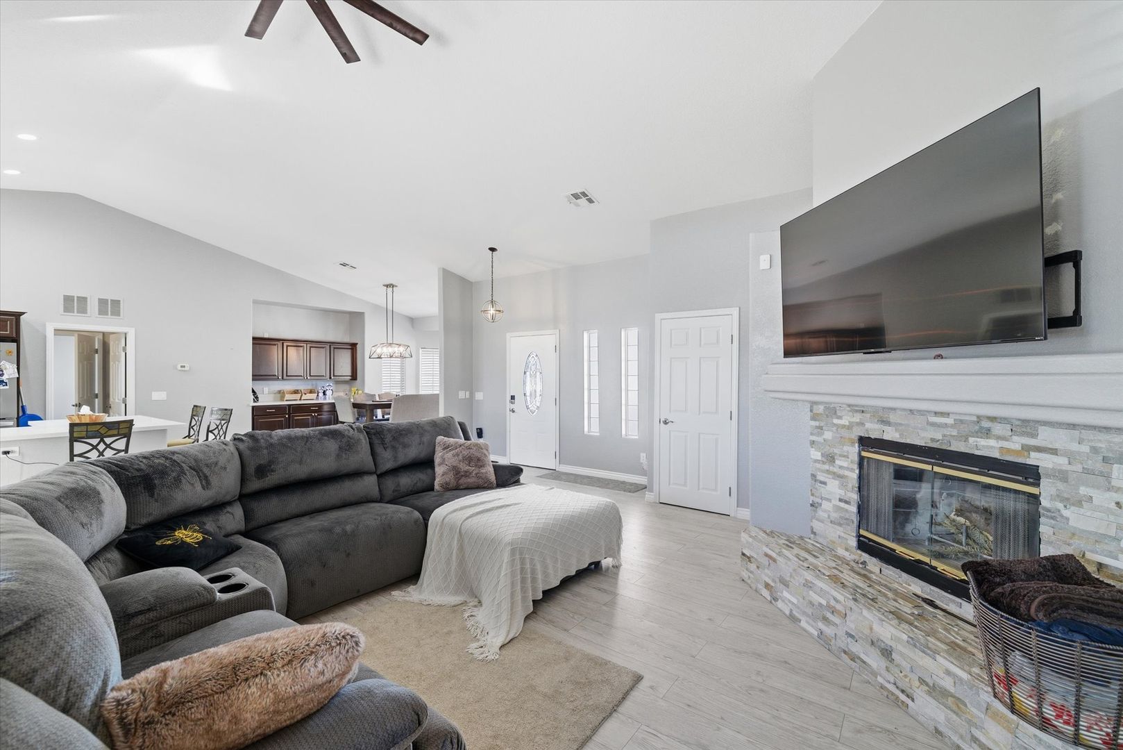 Situated on a spacious 1.4-acre lot with mountain views, this beautifully updated home offers a perfect balance of modern design and comfortable living. The living area features vaulted ceilings, a fireplace, wood-look tile flooring, and French doors that open to the backyard. The kitchen features stainless steel appliances, quartz countertops, a breakfast bar, complemented by a dining area with a built-in buffet. The primary suite includes direct backyard access and a well-appointed ensuite. Three additional bedrooms provide flexibility, including a fourth bedroom with a walk-in closet and access to the utility room. Designed for entertaining, the expansive backyard features a covered patio, sparkling pool, built-in BBQ, water feature, and horseshoe pit. Pool house attached to garage not included in rental & will be used as storage for owners belongings. Pets considered on case by case basis. $175 admin fee due at move in. Pool maintenance of $140/ month included in rent.